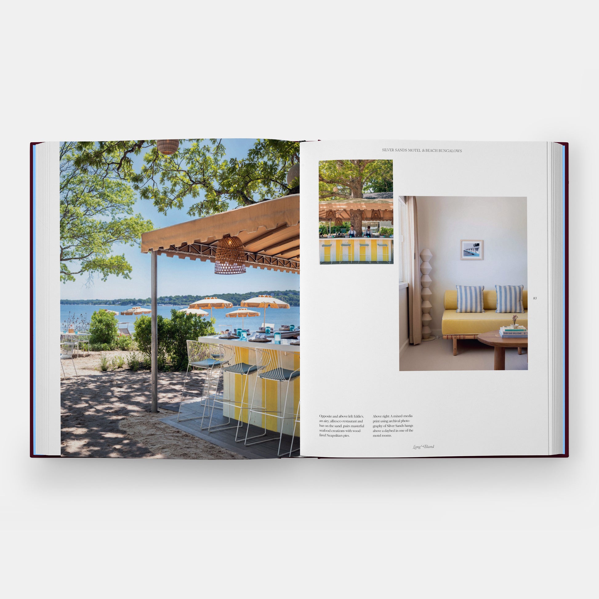 Among its most memorable stories is Silver Sands Motel & Beach Bungalows in Greenport, New York - a full feature chronicling how Alexander Perros reimagined a weathered 1950s waterfront motel into a modern-day classic. Perched on 45 acres along Pipes Cove, Silver Sands embodies what Caradonio calls “serendipity and sprezzatura” - effortless cool rooted in history, community, and place. The chapter traces its meticulous restoration, from its revived neon seahorse sign to its restored landscape and beloved spaces like Nookies and Eddie’s, where the spirit of the North Fork still hums softly in the background.